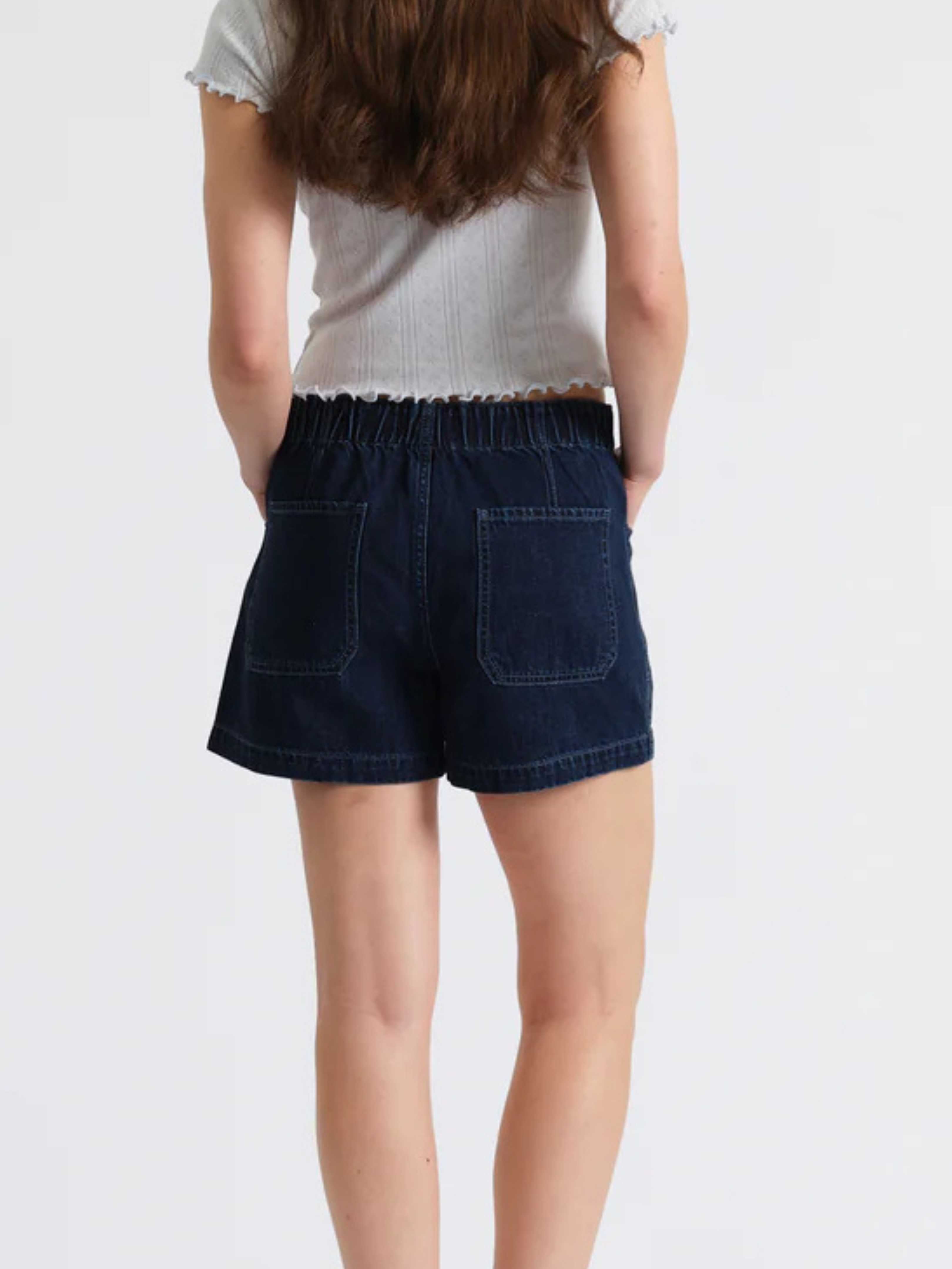 - The Catalina Drawstring Short in Blue Mood is your laid back summer staple with just enough structure. Designed with a soft elastic waistband and adjustable drawstring, it sits comfortably at the waist while oversized patch pockets add a subtle utility feel. The deep indigo wash keeps it classic, while the easy silhouette gives it that effortless, throw on and go energy. Equal parts relaxed and refined, it’s denim made for off duty days.