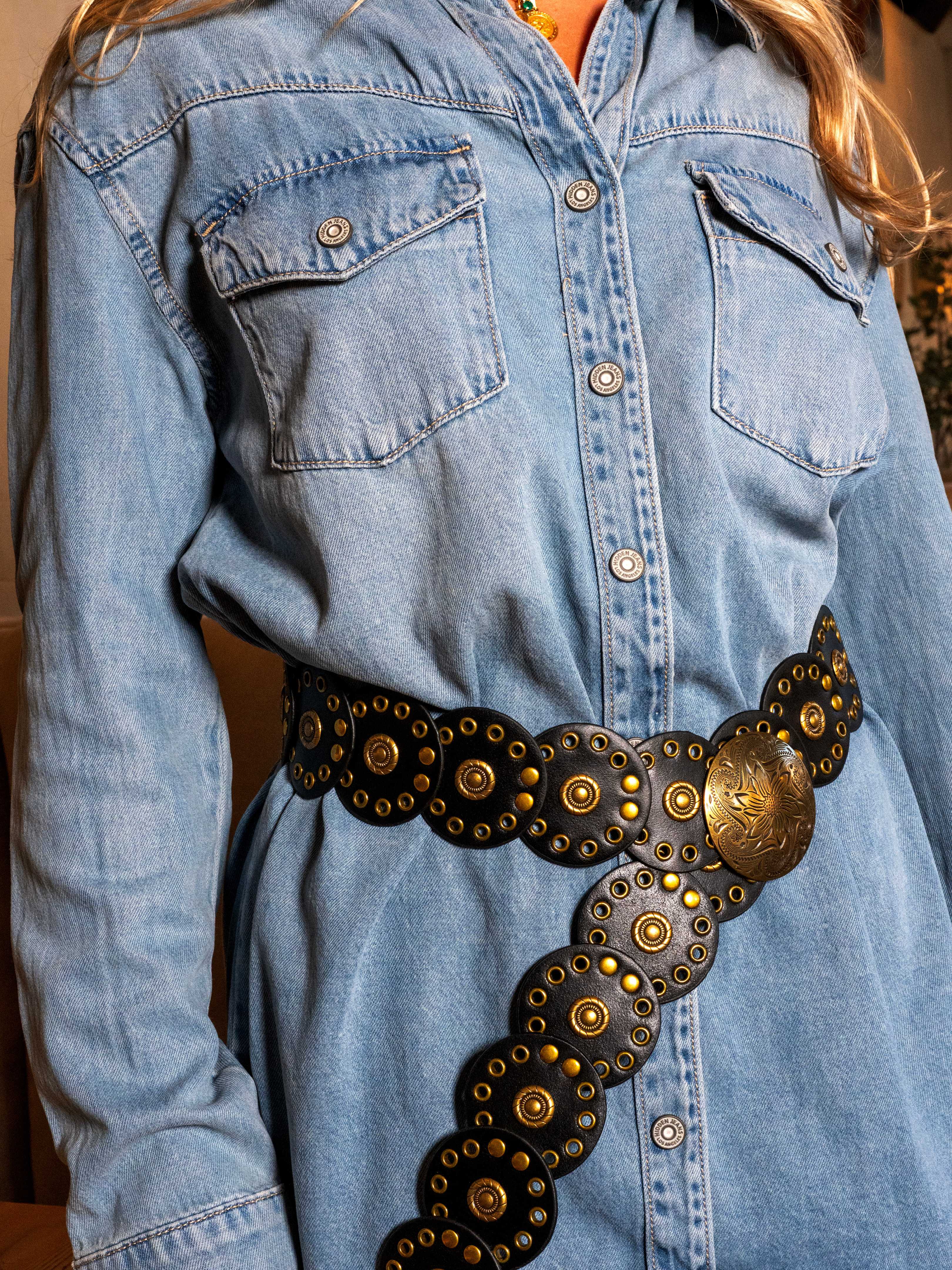 Forever cool and classic, this wear-anywhere mini dress is featured in a fitted silhouette and denim fabrication for the perfect timeless touch.