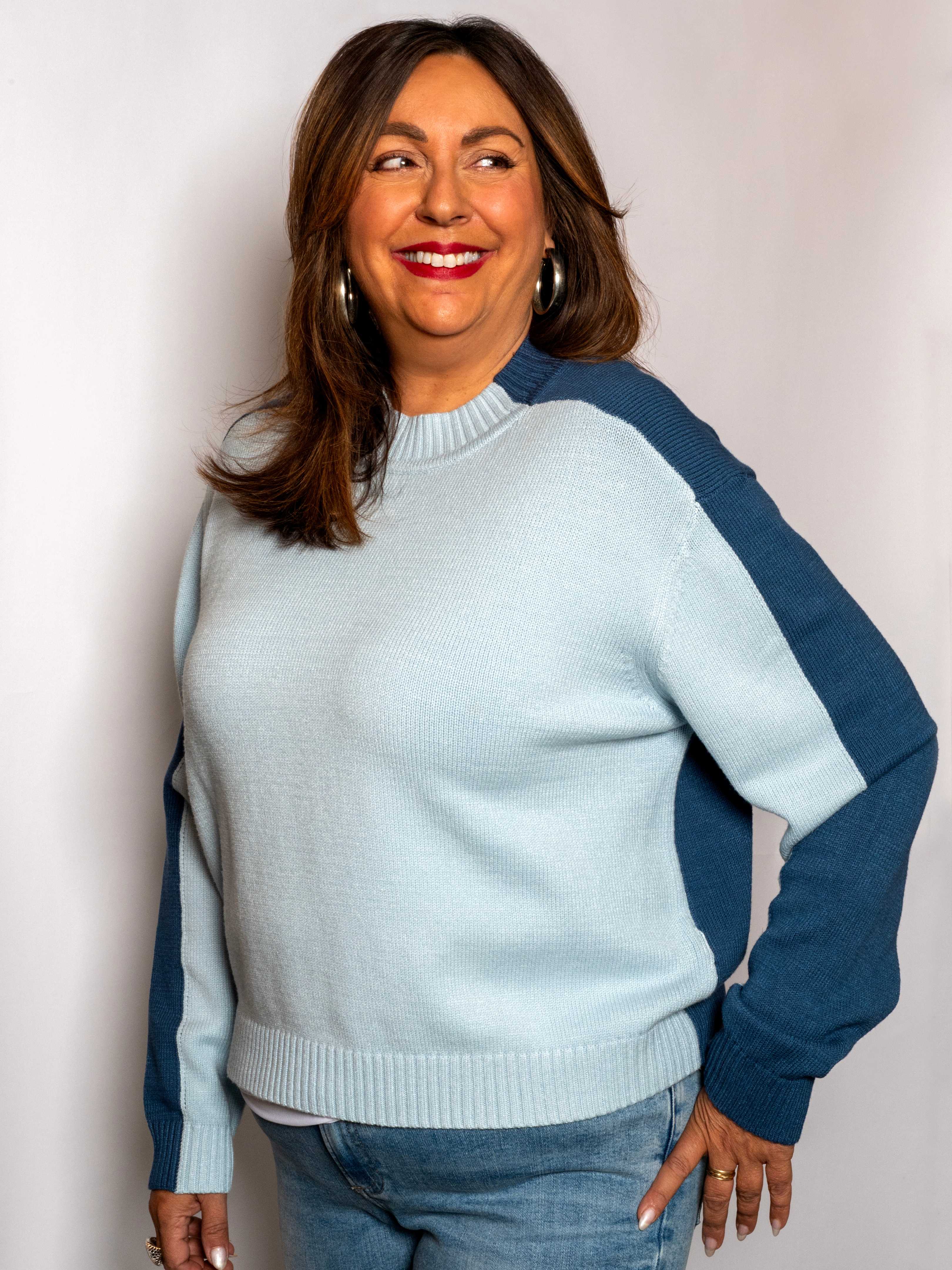 - Rock a fresh color-blocked look with this Two-Tone Mock Neck Sweater, designed with ribbed edges that frame your silhouette beautifully. Layer it effortlessly with your favorite denim or skirt for an instant style upgrade. Playful, versatile, and ready for anything.