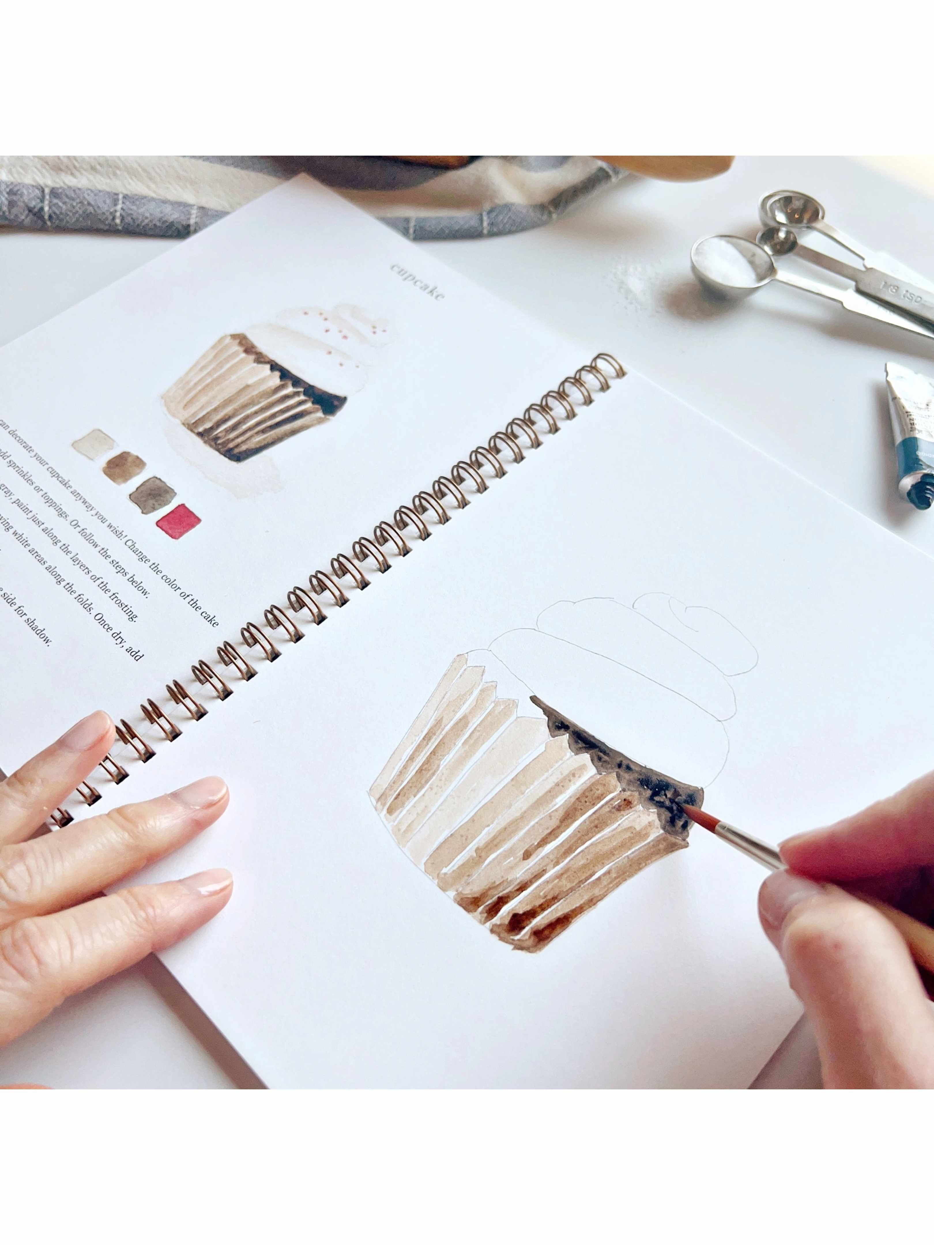 The Baking Watercolor Workbook includes 12 baking-themed illustrations with an example of the finished painting, step-by-step instructions, and a lightly illustrated sketch for you to paint. It's just like a coloring book, but with watercolor! Enjoy this peaceful painting hobby on your own, with children, or with friends. Makes a wonderful gift and is perfect for artists of any age. Details: - 12 beginner-friendly illustrations - Thick 120lb watercolor paper - Lay-flat pages with spiral binding for hassle-free painting and easy tear-out - Lightly outlined sketches to guide you - Easy to carry, travel-ready 6.5" x 9" size - Paint sold separately