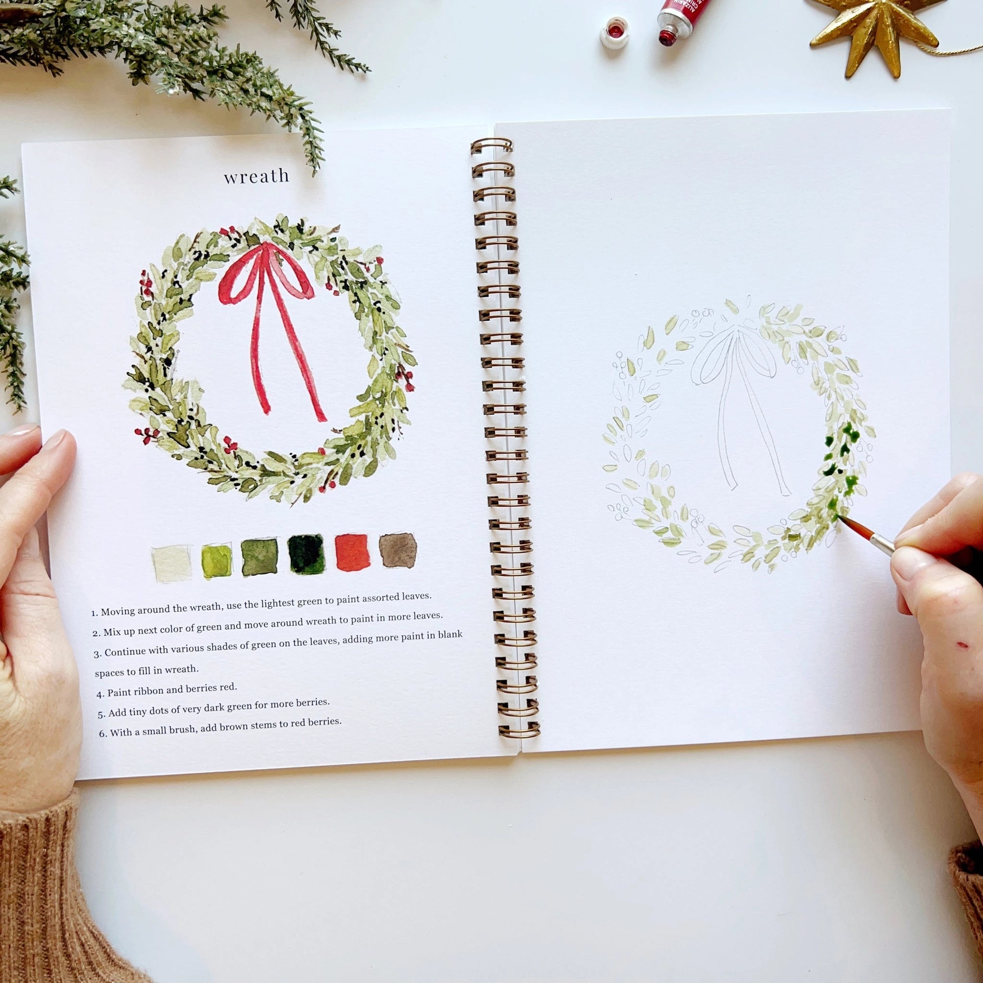 The Christmas Watercolor Workbook includes 12 Christmas-themed illustrations with an example of the finished painting, step-by-step instructions, and a lightly illustrated sketch for you to paint. It's just like a coloring book, but with watercolor! Enjoy this peaceful painting hobby on your own, with children, or with friends. Makes a wonderful gift and is perfect for artists of any age.
