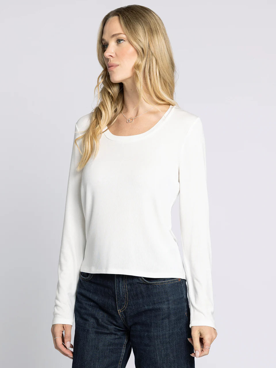 Relaxed and buttery soft, this scoop neck long sleeve is crafted from our micro model blend for a sleek, flattering feel. Lightweight and easy, it’s perfect tucked in or untucked.
